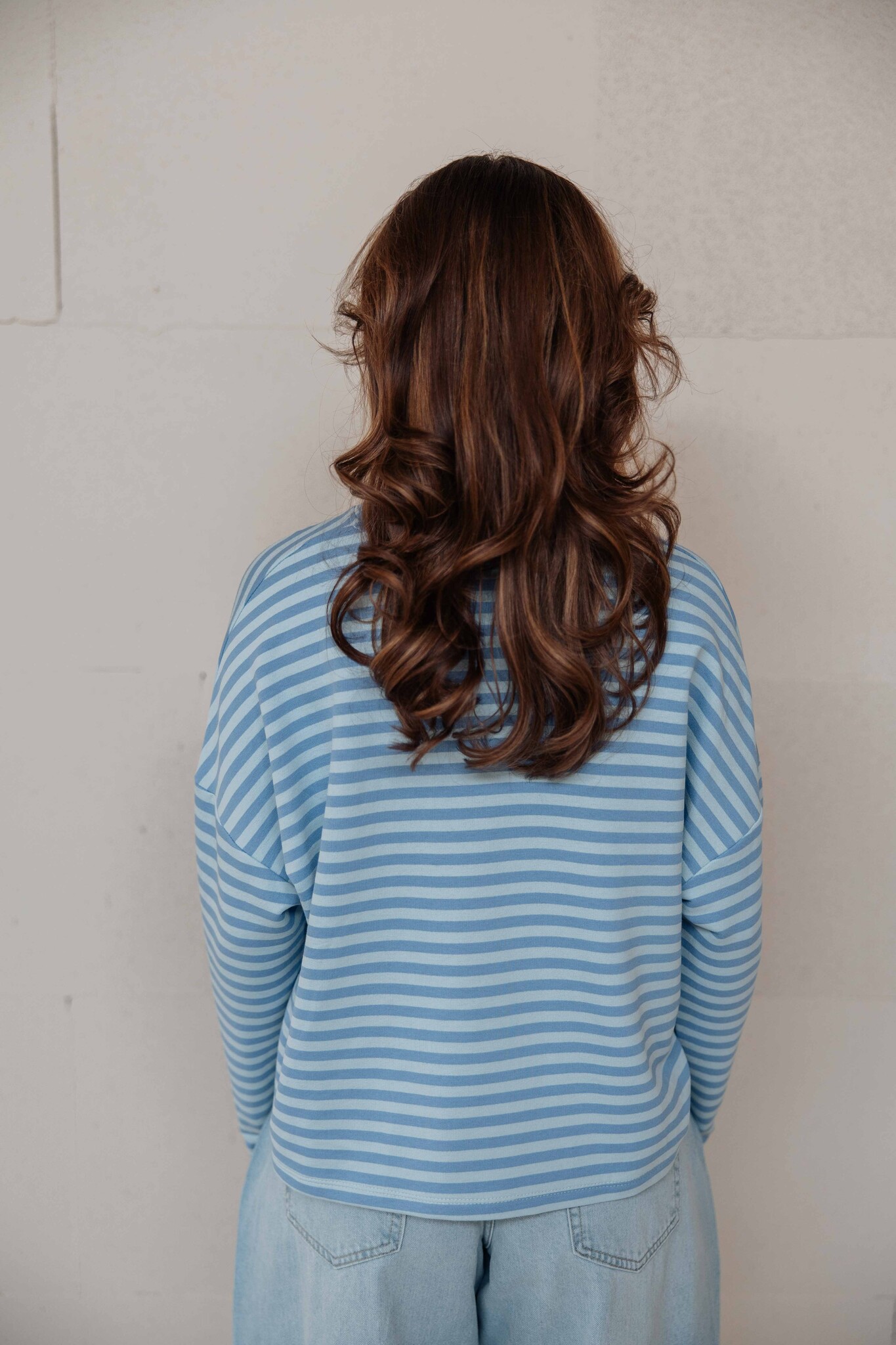 Deze longsleeve heeft een oversized fit en een trendy streeppatroon in twee verschillende blauwtinten. De perfecte longsleeve om te dragen op je favoriete jeans!
