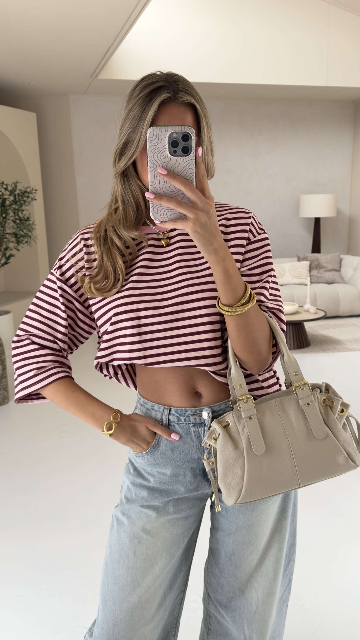 Top gestreept roze/bordeaux | June