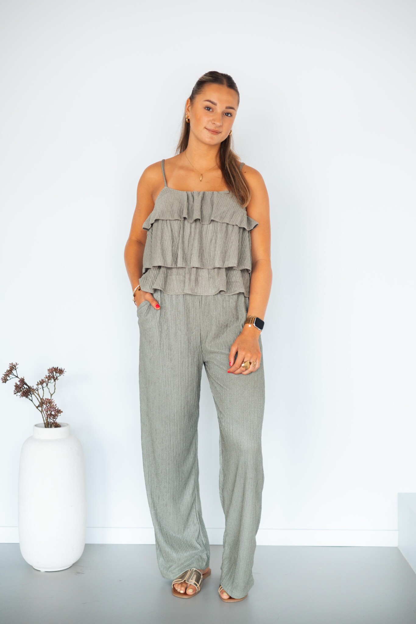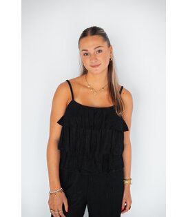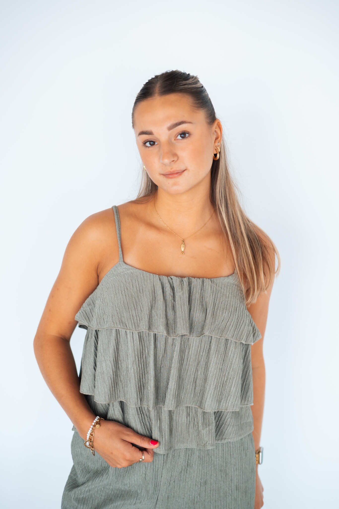Deze top zit lekker luchtig, heeft leuke ruffle details en verstelbare spaghetti bandjes. Combineer het met de bijpassende broek voor een complete co-ord look!