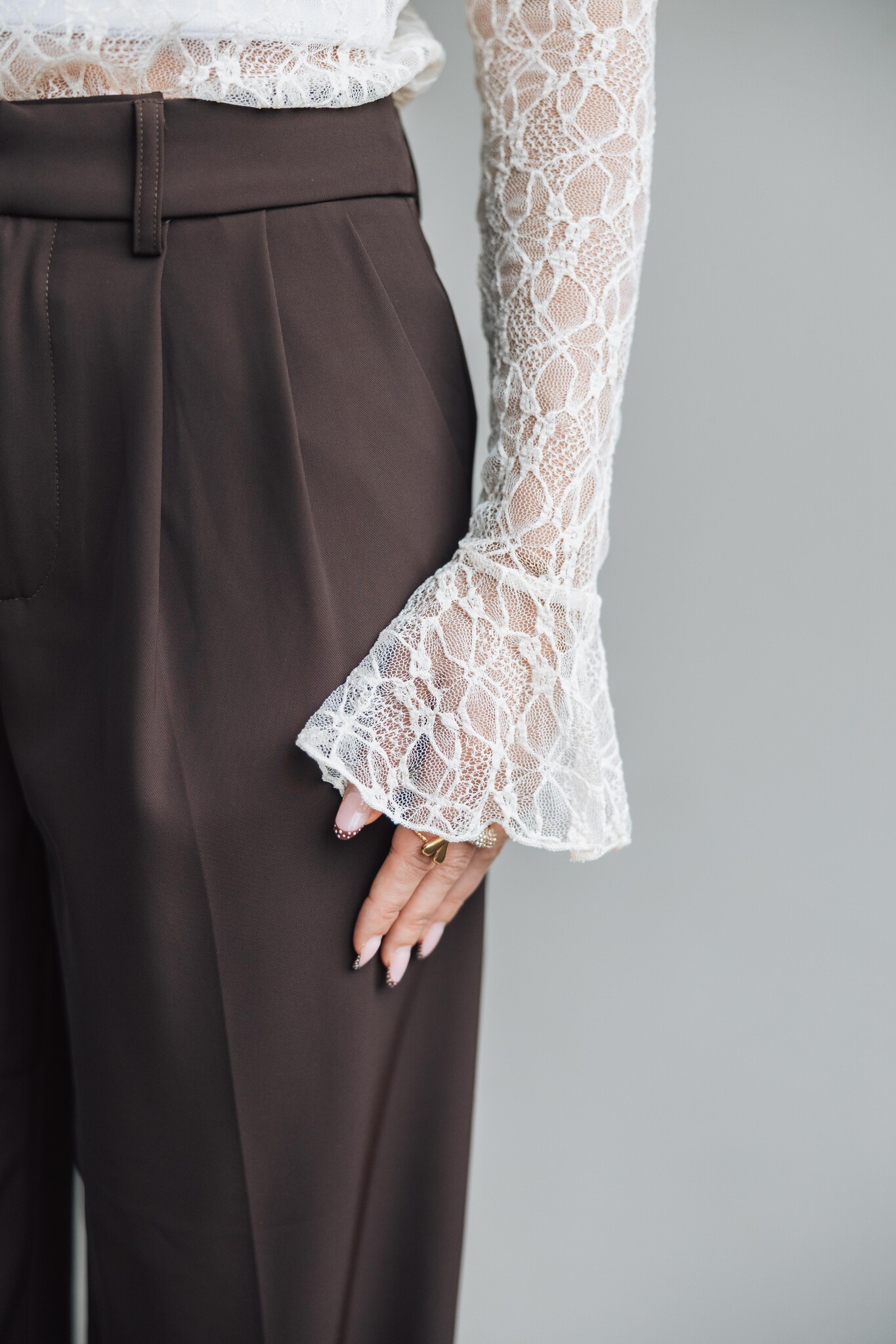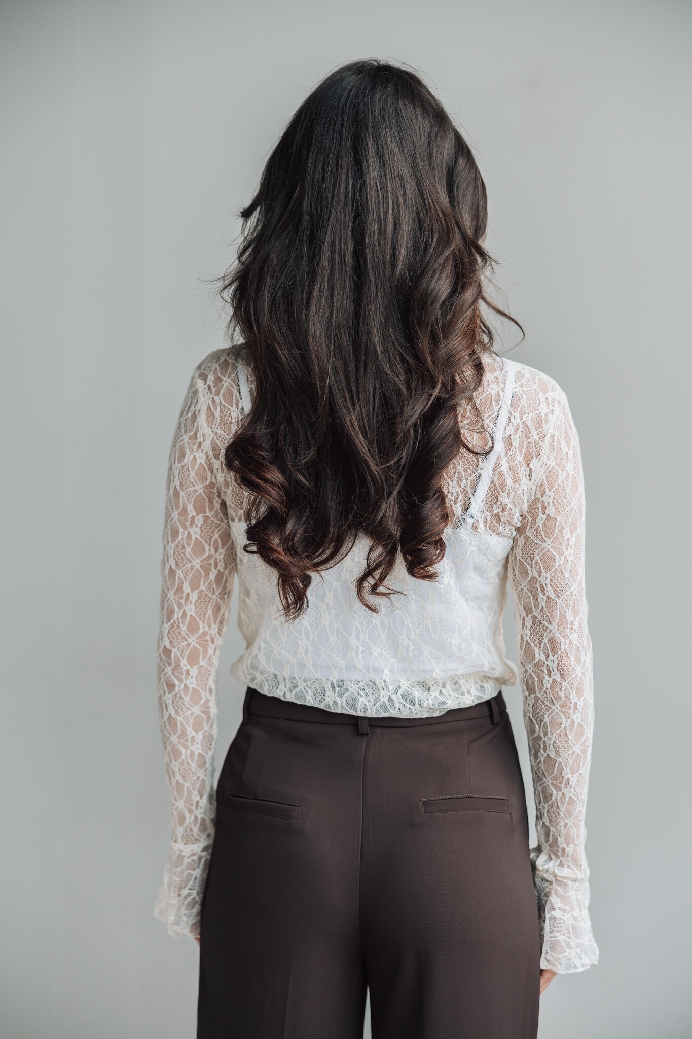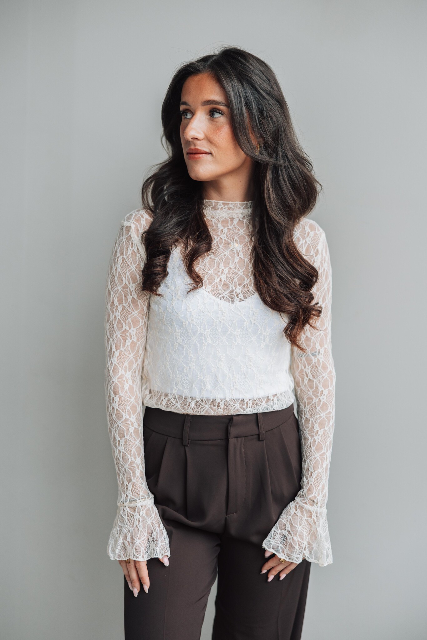 Lace is hot en perfect om te layeren! Deze kanten top is doorschijnend, heeft een ronde hals en een uitlopend mouwtje aan de onderkant.