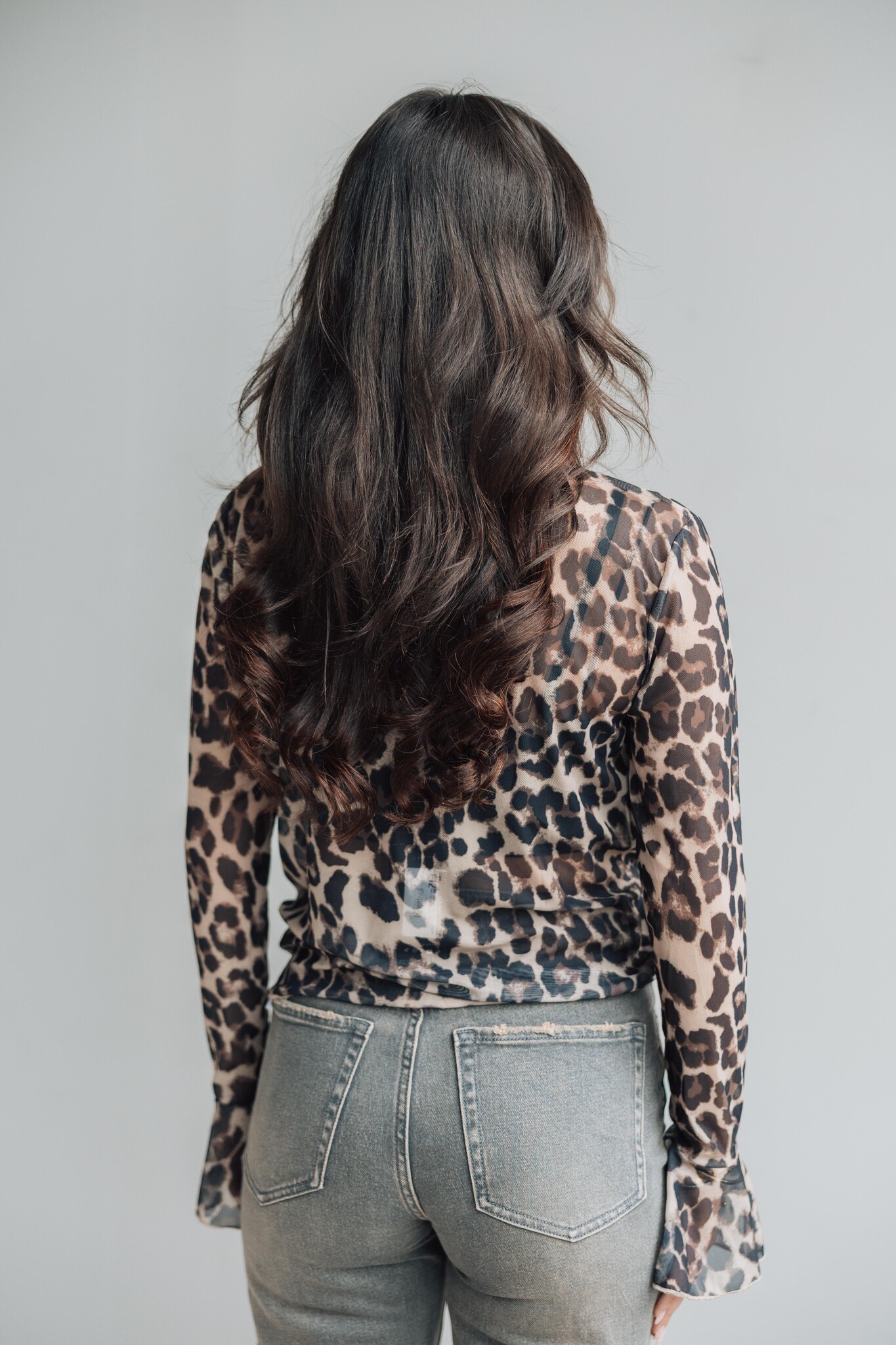 Deze mesh top heeft een trendy leopardprint en lange mouwen. De doorschijnende stof geeft een speelse look en is perfect om onder een spencer te dragen!
