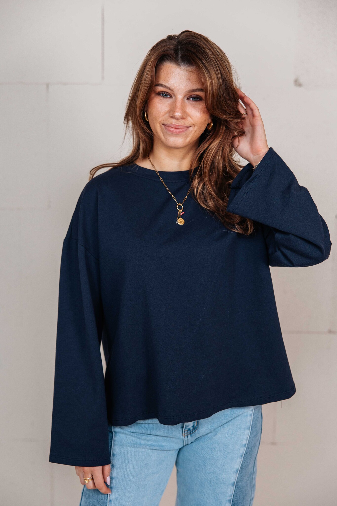 Deze blauwe longsleeve top is de perfecte basic voor elke dag. Lekker comfortabel en makkelijk te combineren met een jeans. Ook handig om onder jasjes te dragen voor een casual en stijlvolle look!