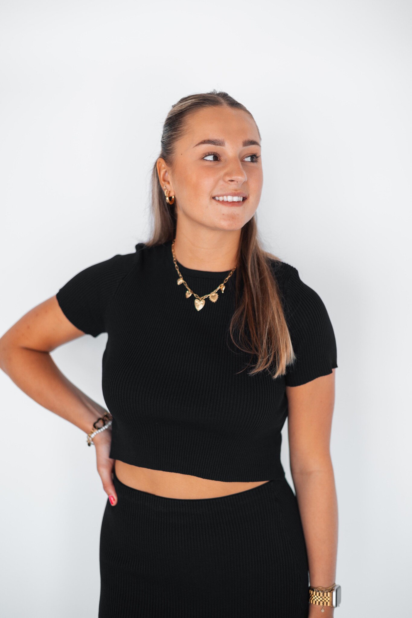 Deze top zit heerlijk stretchy en komt in een ribstof. Combineer het met de bijpassende rok voor een complete co-ord look!
