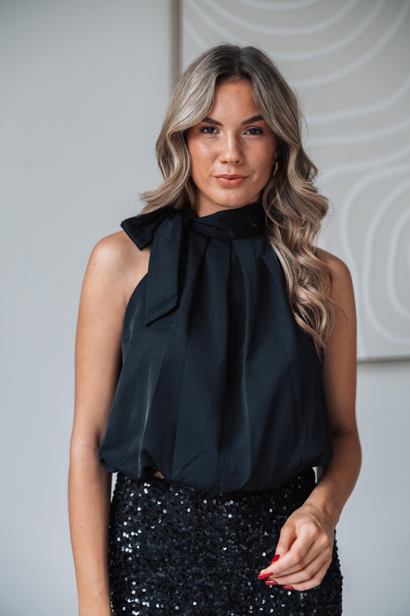 Deze mouwloze top heeft een elegant ballonmodel en is afgewerkt met een vrouwelijke strik bij de hals. De chique uitstraling maakt dit item perfect voor jouw volgende party look!