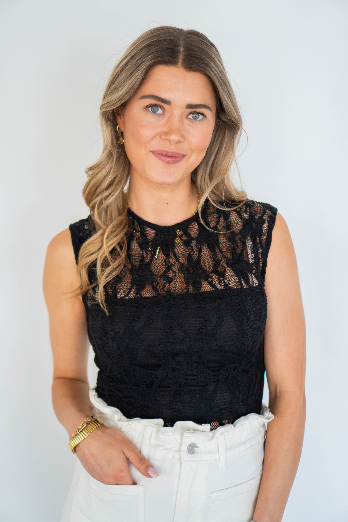 Deze kanten top heeft leuke bloemendetails, schijnt door en heeft een cropped pasvorm.