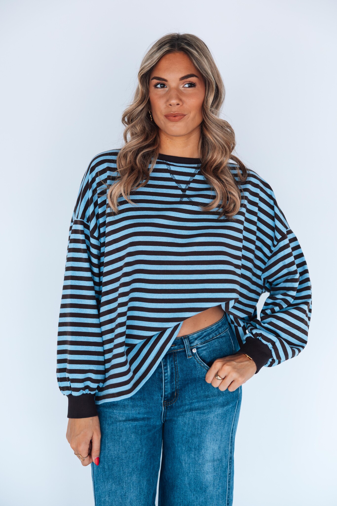 Deze gestreepte trui heeft een oversized fit met ronde hals en ballonmouwen met een aangesloten boord – comfy met een stijlvolle twist!