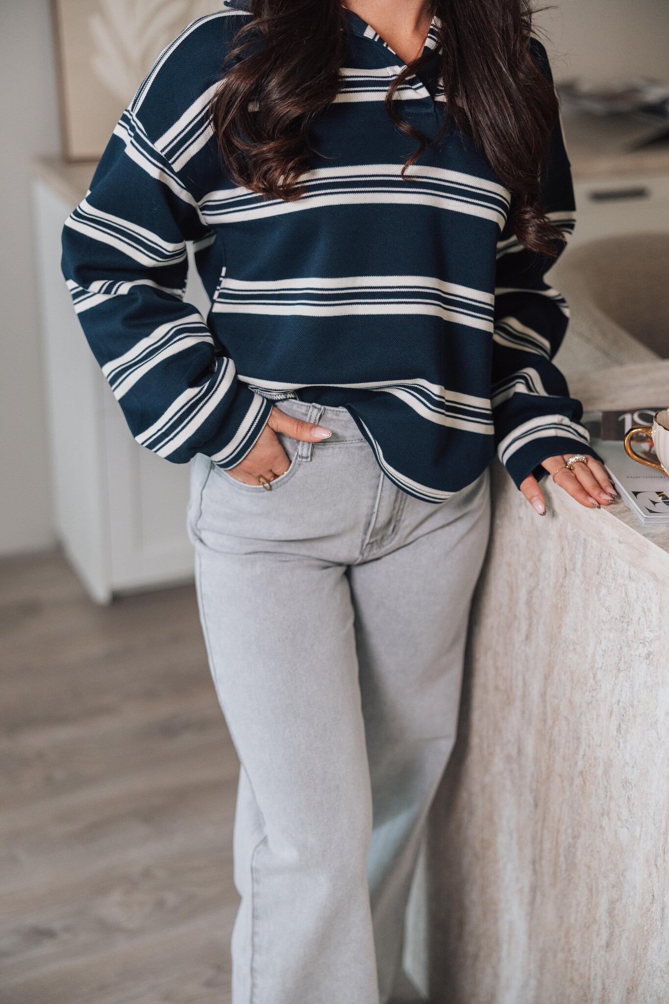 Trui gestreept polo blauw | Camila