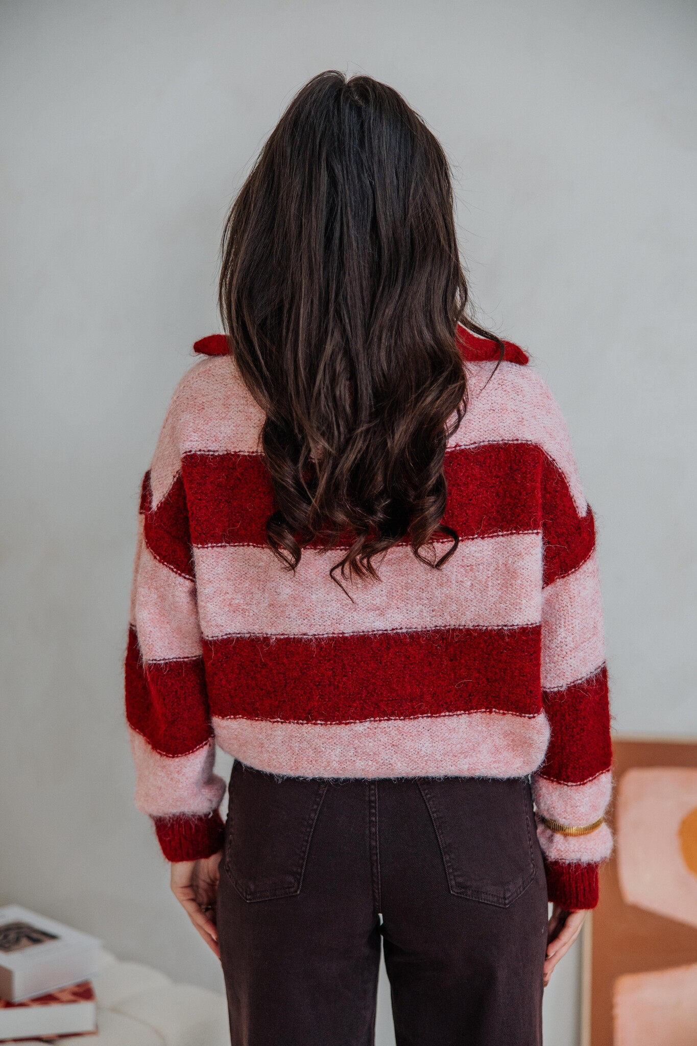 Vest gestreept bordeaux/roze | Salome