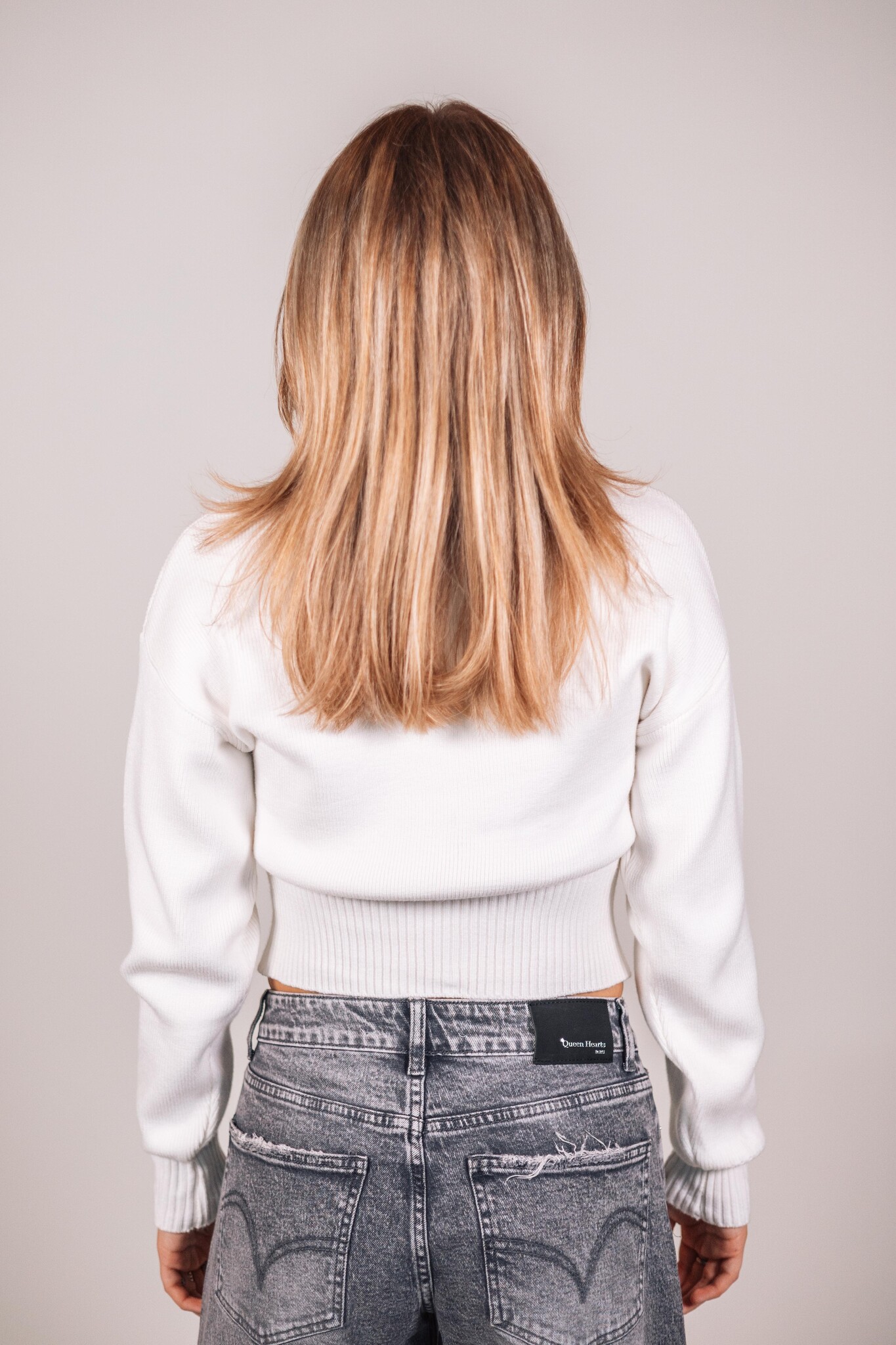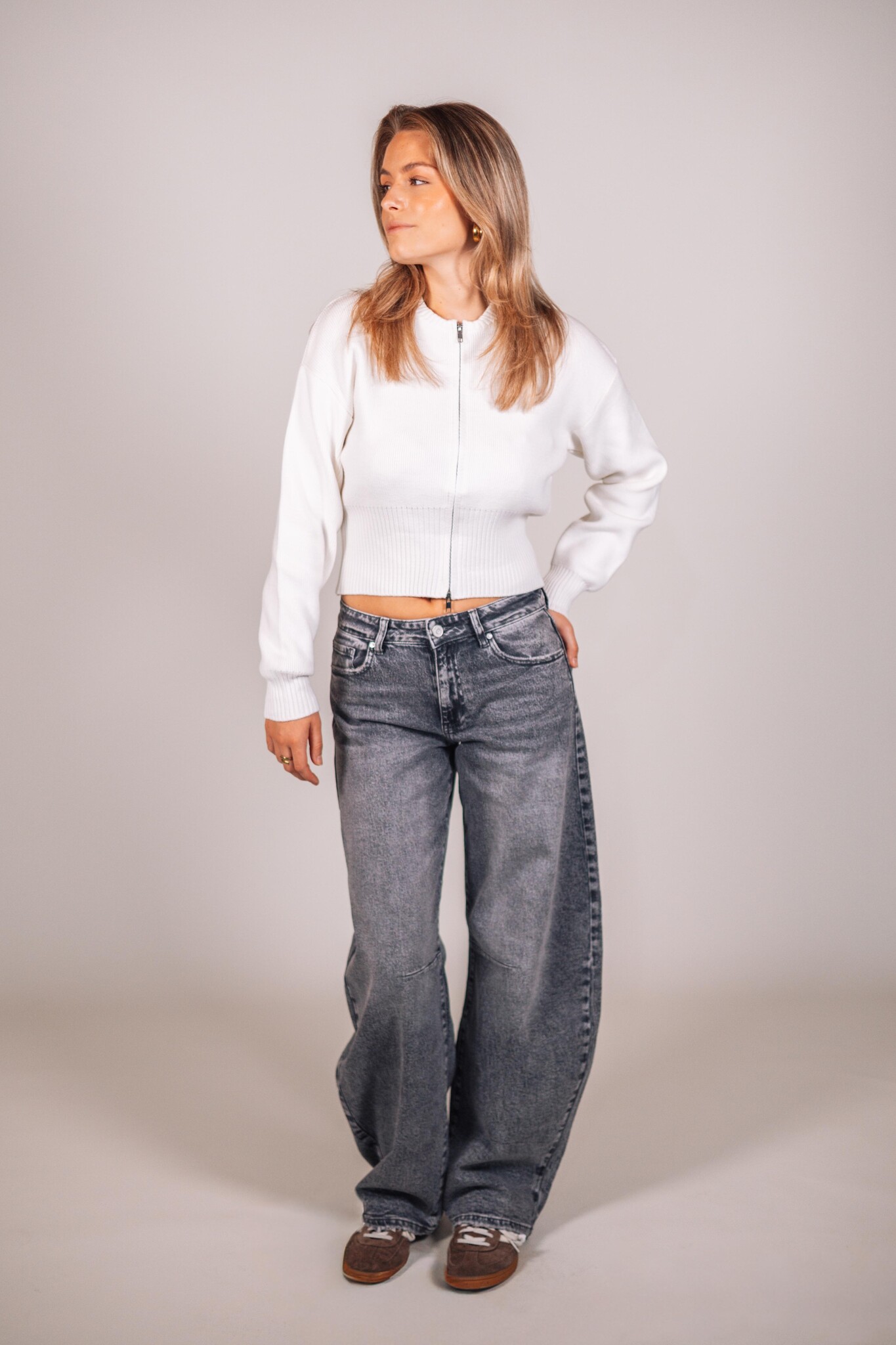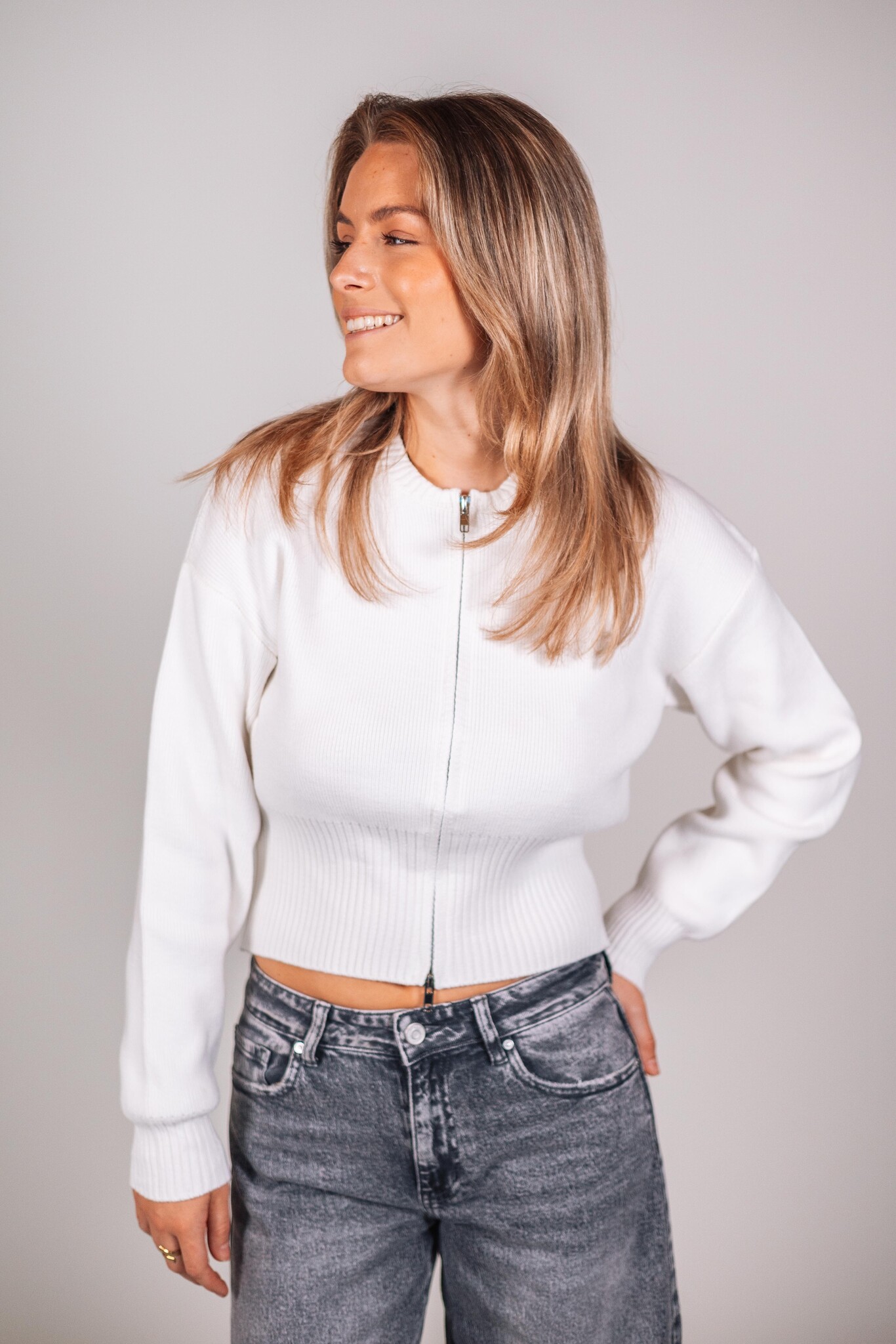 Dit vest heeft lange mouwen, is gemaakt van een iets dikker stofje en heeft een rits in het midden. Het perfecte item voor de herfst!